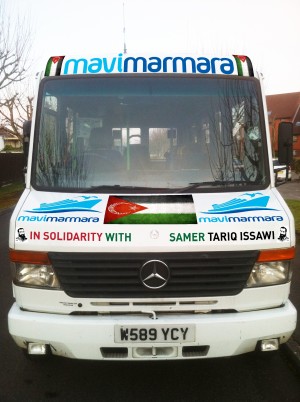 Sakir, who is Turkish in origin, has named the mini-bus “Mavi Marmara” in commemoration of his third attempt to reach Gaza . In 2010 Sakir and another Bristol man, artist Cliff Hanley, came within inches of death when Israeli commandos attacked and boarded the Turkish aid ship killing nine people and injuring scores more. The mini-bus will be decorated with the insignia of the ship together with names of the victims.