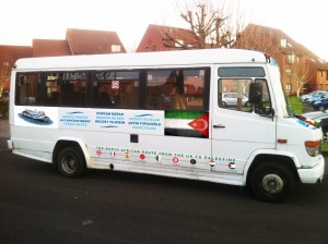 The mini-bus will be driven by two Bristol people:- Keith Darkin, a retired architectural technician from Montpelier . Keith was a driver on the “Roads to Hope” convoy which reached Gaza in 2010, and Sakir Yildirm, who runs a Kebab business in Fishponds. Following operation Cast-Lead Sakir drove an ambulance Gaza in 2009. Less than a year later he was at the wheel of a giant articulated lorry heading a convoy from Bristol with locally collected aid for the people of Gaza .